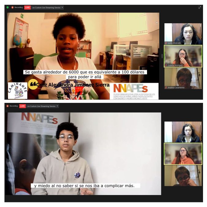 On behalf of the NNAPES Platform, adolescents Cruz Jiménez (Proyecto Caminante, Dominican Republic) and Manuel Fleitas (Gurises Unidos, Uruguay) participated in the forum Suffering in the Shadows: The Impact of Drug Imprisonment on Family Members .